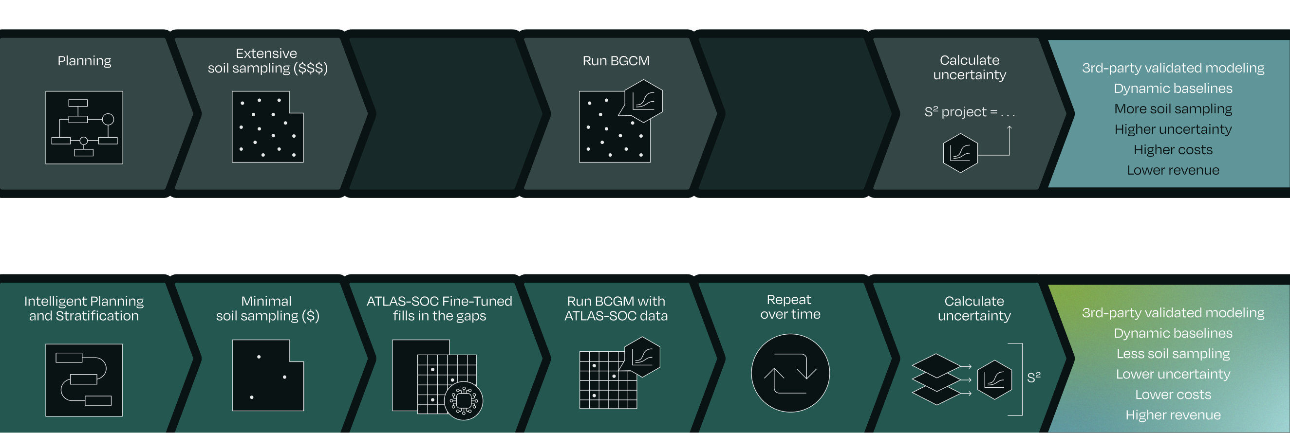 For projects already using biogeochemical models (BGCM) — or starting in crops and regions where they’re well-validated — digital soil mapping strengthens results while reducing reliance on dense sampling.